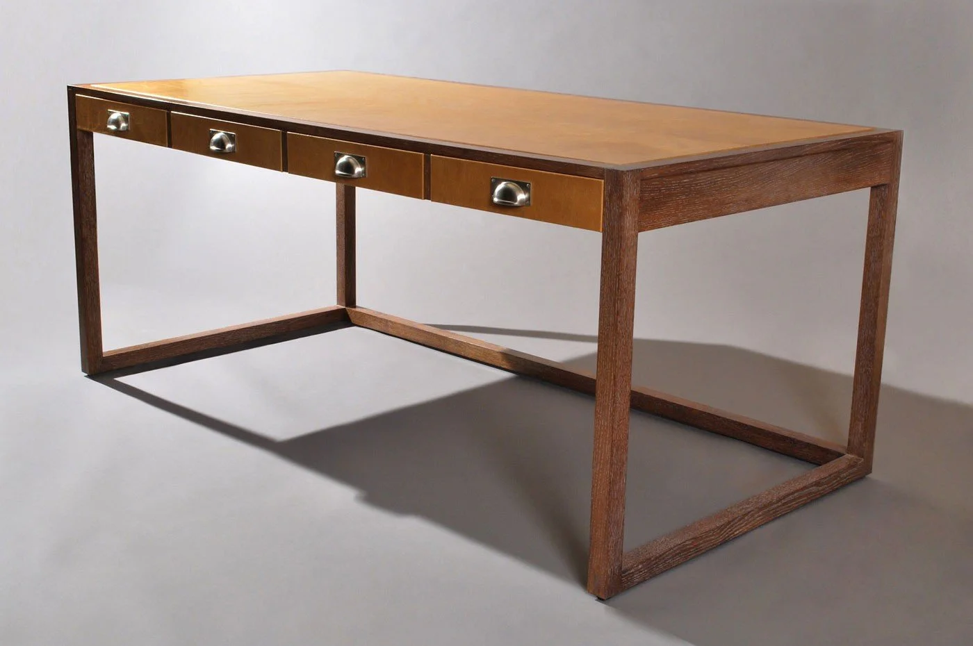 Desktop / Drawer Options: Moore & Giles leather “Tribeca” or “Satin Suede” collections included in pricing.