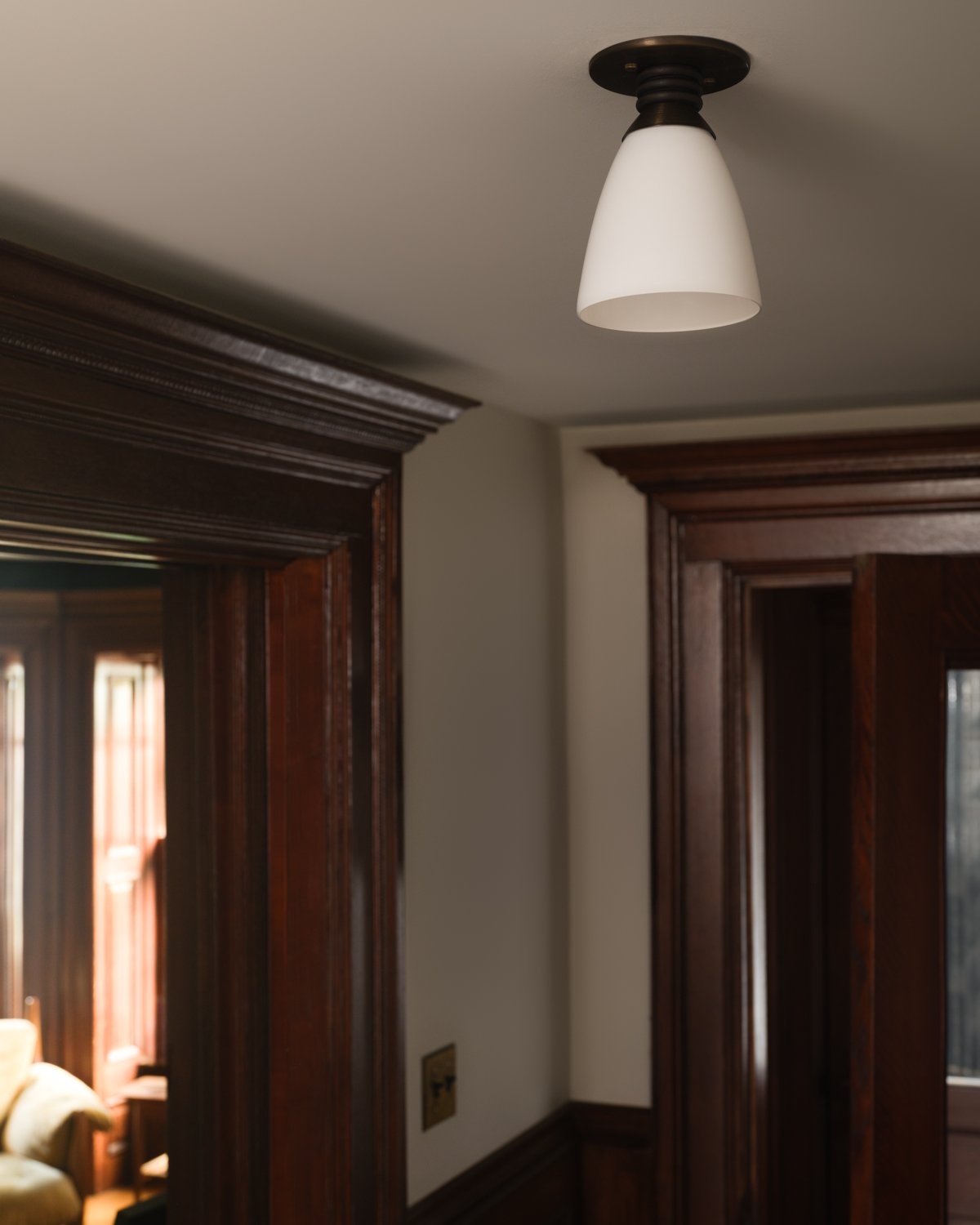 With its finely fluted wooden stem and tailored metal detailing, Belfry offers a study in sculptural harmony. The shade—available in luminous glass or satin metal—crowns the composition, diffusing a warm, understated light. Rich in material contrast yet quietly elegant, Belfry enhances both contemporary and classic interiors alike.