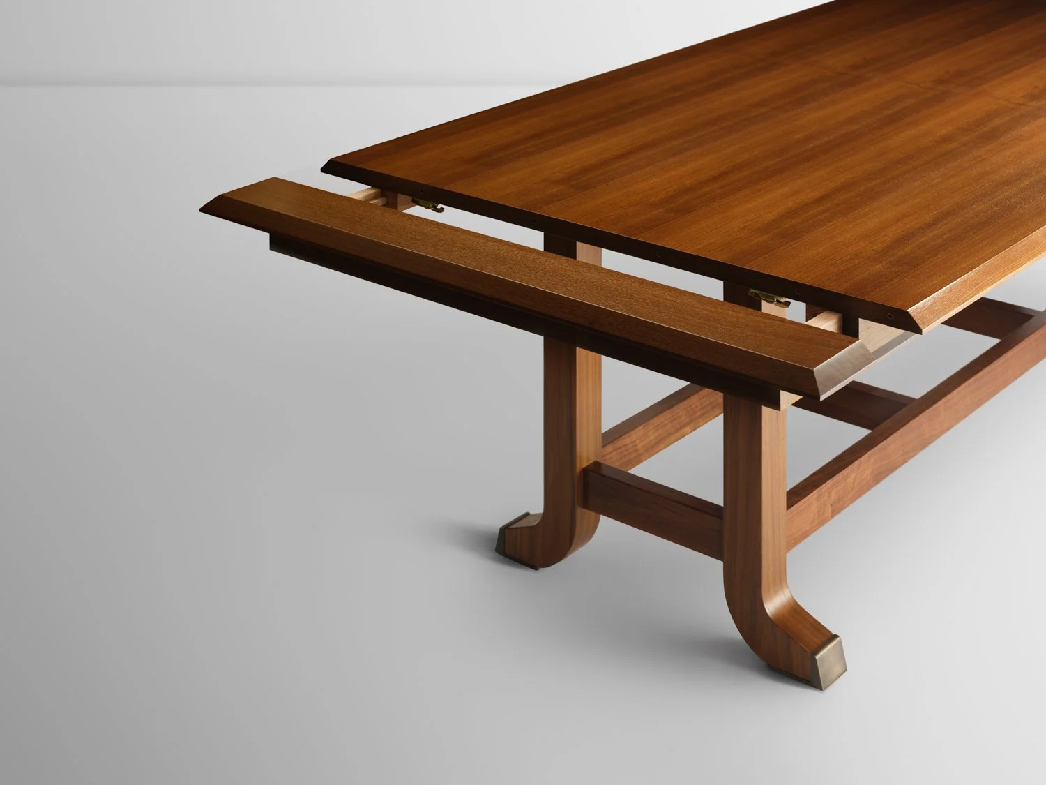 Available in Walnut, Oak, or Ash, Jaquiss may be configured as a fixed or extension table, with fully customizable dimensions suited to intimate dining rooms, grand gathering spaces, or stately foyers. Solid brass feet, offered in plated or patinated finishes, provide a subtle counterpoint of warmth and durability at the point of contact.