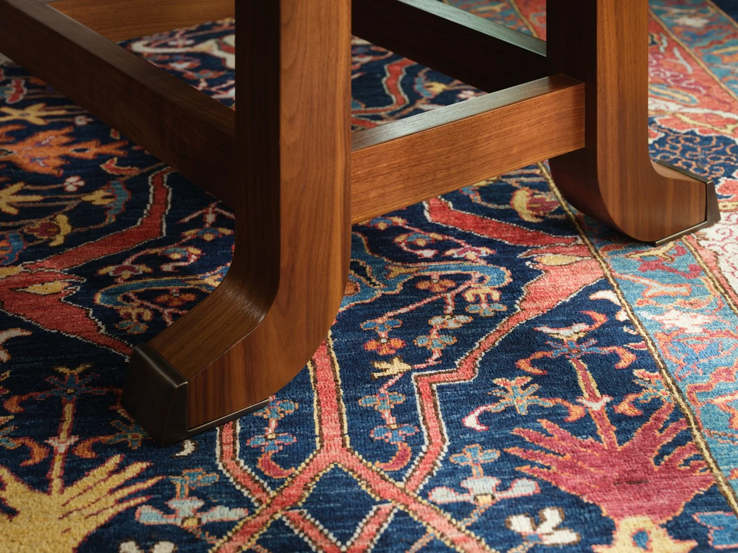 Beneath the expansive top, a refined lattice base introduces rhythm and structure without visual excess, allowing curvature, joinery, and material transitions to speak with measured conviction.