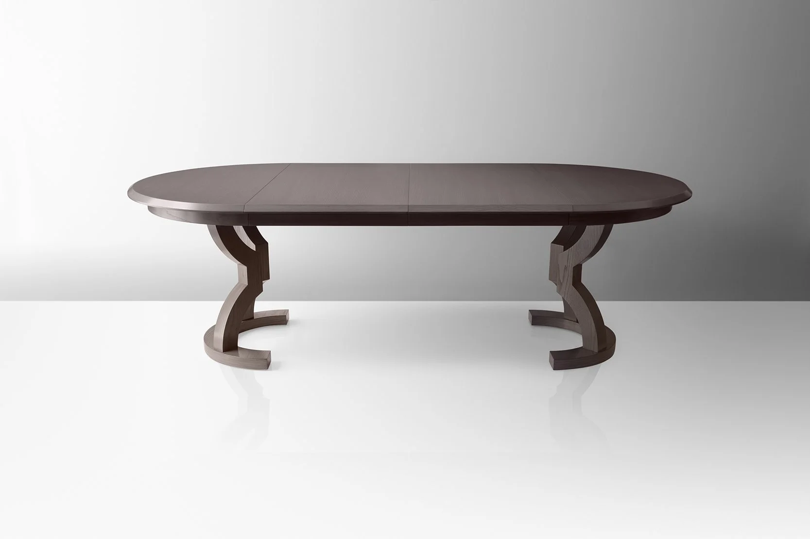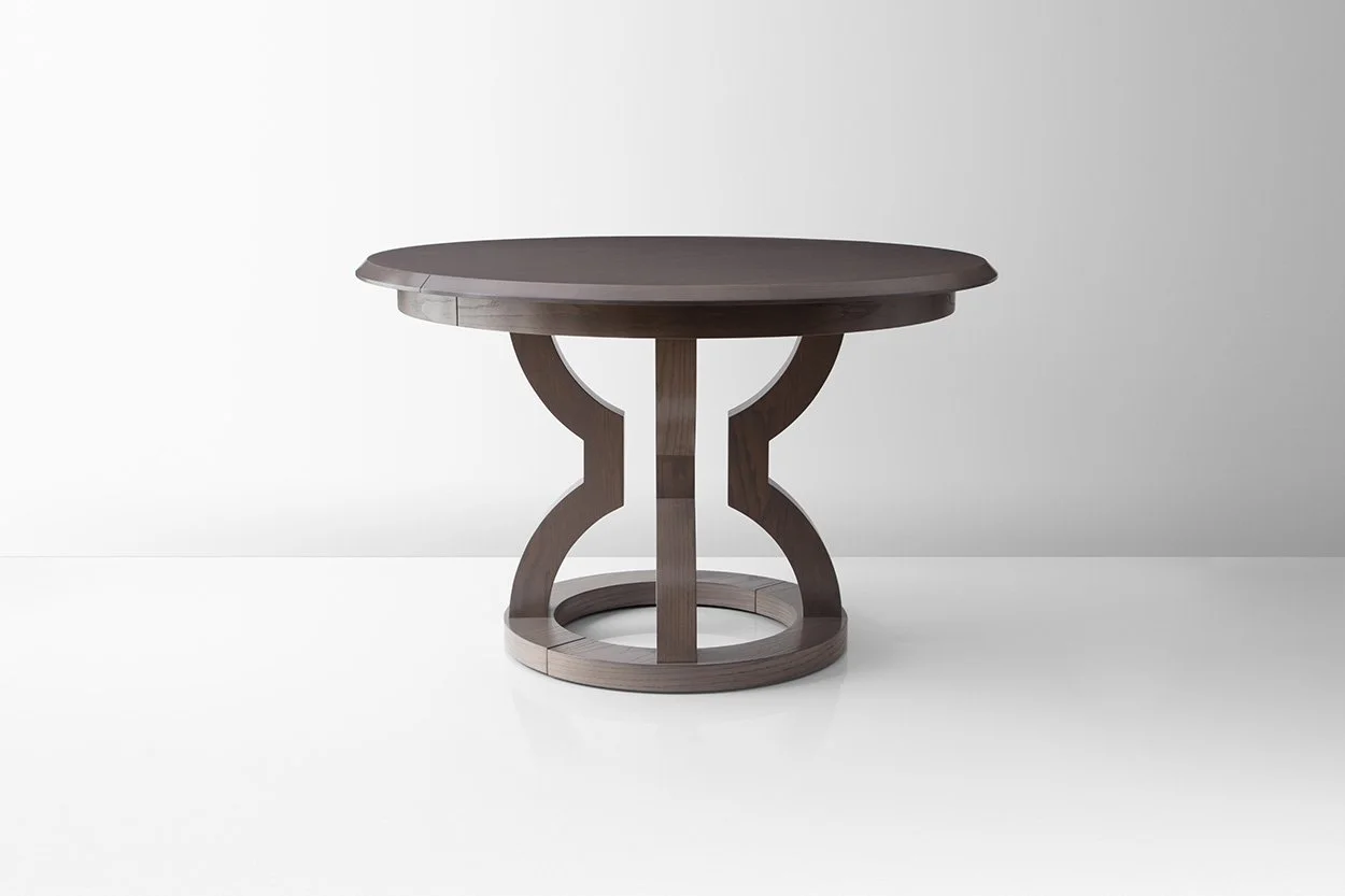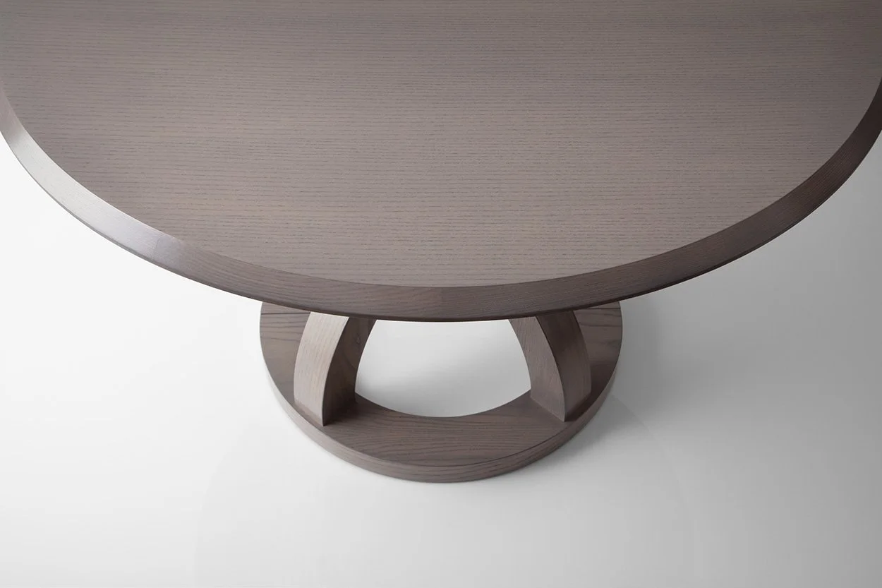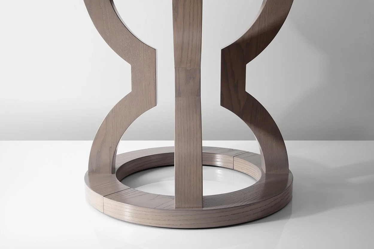 The Onavillu Table Series features a graceful, hourglass shape pedestal made from durable American hardwoods. Whether you’re looking for standard straight grain or looking to make an impression with a sunburst veneer, we have the FSC-certified renewable and durable hardwood veneers you’re looking for. With flexible inserts to seat additional guests, a recessed apron tastefully hides the extension hardware. Further customizable in Oak, Ash, or Walnut wood species to suit any dining environment you can dream up.