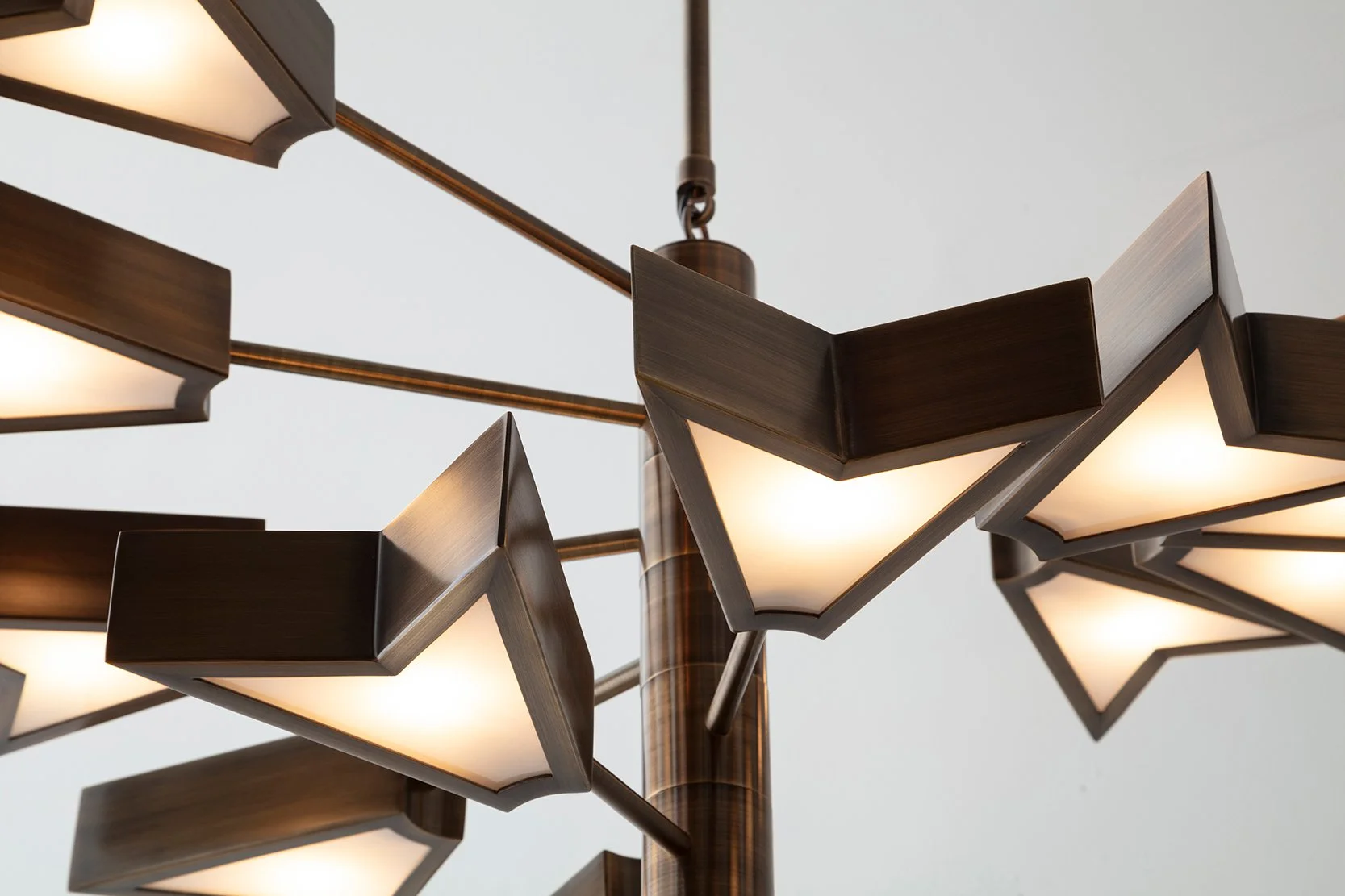 Osiris celebrates the geometric forms of paper origami. You can count on its sturdy fabrication and transitional design to stand the test of time. Hand-brazed brass petals grow into many custom forms, like that of a flower. Your clients will delight in the magic that Osiris adds to their home, as it graces the walls with soft reflections of light. Ask us about the many elegant compositions made possible by the petals of Osiris.